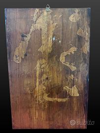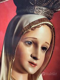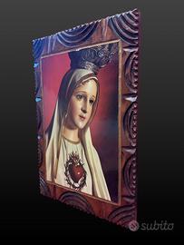 Vendo quadro religioso raffigurante la Madonna con cuore. L’immagine è realizzata su supporto rigido, probabilmente mattonella/ceramica, inserita in cornice di legno lavorata. Oggetto decorativo e devozionale, adatto per casa, cappella privata, collezione o ambiente religioso. Misure cornice: 25 x 39,5 cm circa. Condizioni come da foto. Presenti normali segni del tempo, soprattutto sul retro e sulla cornice. Prezzo trattabile