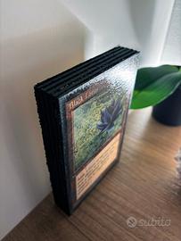 Stampa su legno fatta a mano tramite trasposizione dell'immagine sul legno con colla vinilica e spray fissante per dare risalto ai colori, raffigurante la mitica carta Magic, Black Lotus.