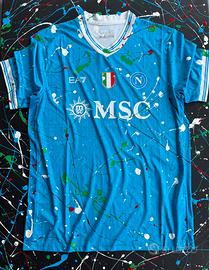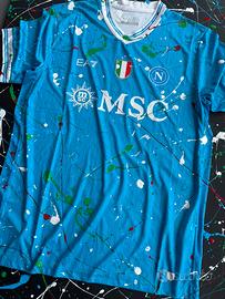 Vendo quadro fatto a mano con maglietta originale napoli con tricolore sul petto, tela con base in legno e colori acrilici, ideale per regali di compleanno o come arredo di casa.