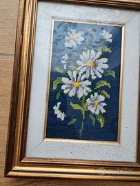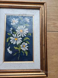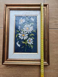 Vendo quadro con ricamo a mano raffigurante margherite bianche nello stato d'uso in cui si trova. Misure indicate con foto