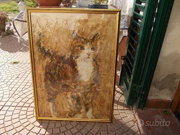 Bellissimo ritratto di un gatto alla maniera del maestro Maurilio Colombini Importante pittore nato a Piombino 1933 e recentemente scomparso completo di cornice e vetro misure H73x54 la tecnica è tempera su carta ritiro a mano Grosseto e provincia