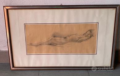 L'immagine mostra un disegno a carboncino di un nudo femminile. Un nudo è una rappresentazione artistica del corpo umano senza vestiti Misure nella foto