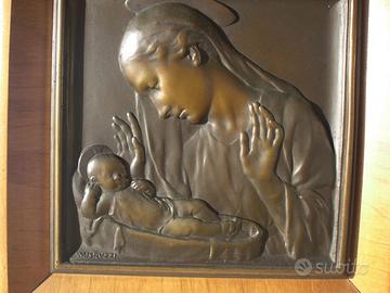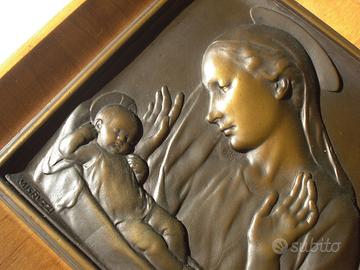 QUADRO D’EPOCA MADONNA CON BAMBINO IN BRONZO.