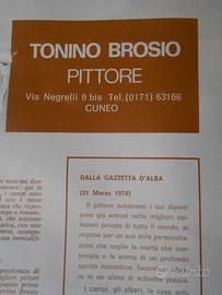 ho ereditato diversi quadri e grafiche di cui vorrei liberarmene (Grego, Mariotti, P. Pozzi, Zigaina, De Angelis, Debeur ecc), vorrei però prima capire cosa ho in mano , chiederei quindi se possibile ad eventuali esperti od appassionati di esprimere liberamente commenti, opinioni ed eventualmente una stima. ve ne sarò profondamente grato, ed a "buon rendere" con i campi di cui sono invece particolarmente ferrato! Questo primo quadro è di tonino Brosio, del cuneese, databile pieno anni '70, io l'ho chiamato "Mucca al pascolo alpino". Grazie.