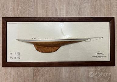 Vendo quadro nautico artigianale di alta qualità, realizzato in Italia da Dime Arte. Opera dedicata all’America’s Cup - Yacht “Columbia” (1899), New York Yacht Club, progetto di Nathaniel Herreshoff. Il quadro presenta elemento centrale in legno massello sagomato in rilievo, applicato su base grafica tecnica, con cornice in legno e vetro frontale. 🔹 Produzione artigianale certificata (etichetta originale sul retro) 🔹 Oggetto decorativo elegante e ricercato, non industriale 🔹 Ideale per studio, soggiorno, ufficio, casa al mare o ambiente nautico 🔹 Condizioni: come nuovo 🔹 Misure: Lunghezza 54cm x Altezza 24cm x Spessore 1 cm 📞 Contatto diretto/WhatsApp: 3408849544