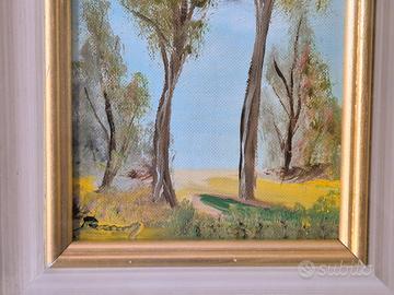 Quadro olio vintage 1948 con certificato – cornice dorata importante Vendo dipinto originale a olio su tavola raffigurante paesaggio di campagna lombarda, firmato Bruno Bertazzi e datato 1948. Opera d’epoca completa di certificato di autenticità (presente sul retro). La cornice dorata è di pregio, ampia ed elegante, in ottime condizioni: elemento decorativo di grande impatto. 📐 Dimensioni dipinto: circa 12 x 24 cm 📐 Dimensioni con cornice: circa 43 x 30 cm Colori luminosi e soggetto molto armonioso, ideale per arredamento classico o vintage. Condizioni molto buone. 💰 Prezzo: 25 € trattabili 📍 Torino 📦 Spedizione disponibile Disponibile anche secondo quadro simile dello stesso autore. Contattami per ulteriori informazioni o foto