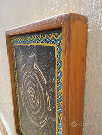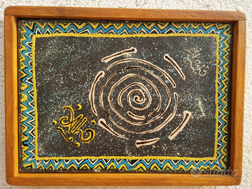 Quadro tecnica mista Olio e Smalto Sintetico su tela, con due ganci chiudibili ai lati direzionali da preferire per appenderlo al muro e cornice semplice liscia inclusa colore marrone tec , il quadro è #LoSpazioDiUnArtistaifinito di alcool alcoolben ,misura 33 x 44 x 4 cm pezzo unico