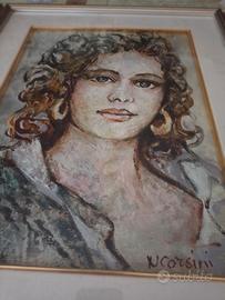 Nazareno Corsini artista di Calalzo di Cadore. Scuola di noti pittori veneti, Dinetto compreso, ha disegnato anche per la nota occhialeria Demenego. Sempre vissuto nella località cadorina. Olio su tela raffigurante volto femminile 40x 30 la tela. Con Buona cornice Prego non speculazioni. Per collezionisti pittori zonali. Primo contatto mail Subito. Grazie