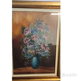 Quadro Olio su Tela 70x50 Mariolino da Caravaggio (Feraboli)Vaso di Fiori con Cornice Epoca