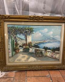 Quadro Olio su tela Carlo Picozzi 71×90 alla cornice Veduta mediterranea, Golfo Di Napoli stile impressionista decorativo Epoca Meta XX Secolo Condizioni come da foto
