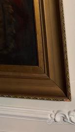 Quadro olio su tela raffigurante cavaliere. Come evidenziato in foto la cornice è leggermente smussata nell’angolo in basso a destra. Firma “Damiani” datato 1977, 70x100 cm. Ritiro e trasporto a carico dell’acquirente.