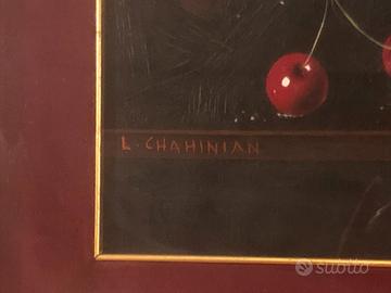 Spettacolare quadro olio su tela di Liparit Chahinian (Venezia 1956) natura morta, misure cornice 72x53 cm. e tela 60x40 in ottimo stato.