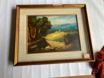 Quadro del pittore Pio Santini, firmato, paesaggio, cornice rovinata esternamente.
