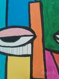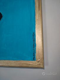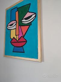 QUADRO ORIGINALE DIPINTO A MANO TECNICA MISTA SU TELA CM 50x40 IN ARTE CUBISMO NON INCORNICIATO CON BORDI DORATI E FIRMATO