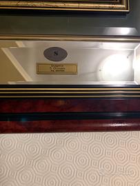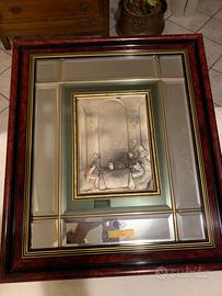 Quadro in legno naturale su specchiera con bassorilievo in argento 925/1000. Interamente fatto a mano Made in Italy. Misura H 64 L 56.