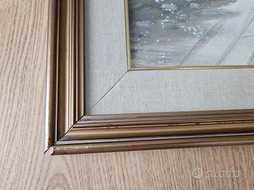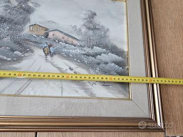 Vendo quadro paesaggio innevato pittore Raffaele Maietta nello stato d'uso in cui si trova. Presente piccolo segno nella cornice come fotografato Misure indicate con foto