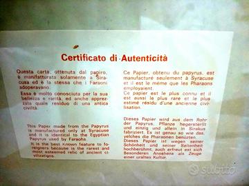 Originale degli anni '80, realizzato a SIRACUSA, patria di questa pianta in Europa oltre all'Egitto (la pianta di Papiro, Ciperus Papirus, vive unicamente lungo le sponde di 2 fiumi: il Nilo in Egitto e il Ciane a Siracusa in Sicilia).