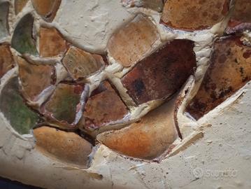Vendo quadro astratto/particolare nel senso che non è dipinto. Ha base interna tipo cemento/gesso colorato di giallo e in mezzo ci sono pezzi in terracotta forse pezzi di vasi incastrati/incollati in mezzo formando un cerchio a 3 anelli. Ha cornice spessa ed è abbastanza pesante. La parte posteriore è in legno doppio, c'è la cornice e sopra un altro pezzo per coprire il tutto, nel fondo c'è pure un codice a barre. Non è mio, e stato trovato in soffitta. Misura cm 48x46x2 ed è in perfette condizioni. La spedizione è da aggiungere causa peso e imballaggio.. Vige regola visto piaciuto e preso. No perditempo e affaristi grazie!!!