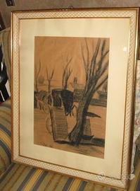 QUADRO CARBONCINO PITTORE LUIGI GAY 1959 "STAZIONE DI TREVISO"