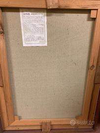 Vendo quadro pittura ad olio del noto pittore Nino Menchini anno 1985, attivo nel periodo 1950-1990, il quadro è provvisto di cornice senza vetro. Le dimensioni del quadro con cornice sono 83x62 cm, lo spessore della cornice è circa 5,5 cm. Gradito ritiro a domicilio a Roma o posso spedire dietro accordo con l'acquirente. Valuto proposte.