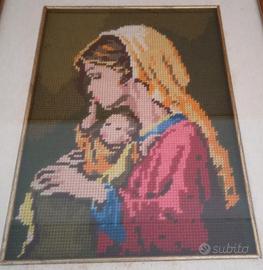 Quadro punto croce vintage, “madonna con bambino”, dimensione tela larghezza cm 20 altezza cm 27.5.