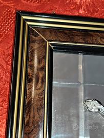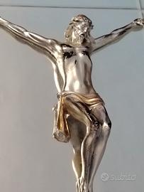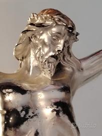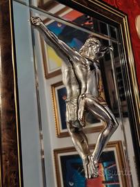 Quadro religioso con immagine di Gesù a rilievo tridimensionale,in Metallo Argentato,realizzato su base in vetro a specchio.La cornice è in stile effetto radica,colore marrone dorato,che dona al quadro un aspetto raffinato ed elegante,La figura di Gesù è lavorata in rilievo 3D con grande cura dei dettagli:Dimensioni totali: Altezza cm 48 x Larghezza cm 38.Altezza immagine Gesù,25 cm.Braccia con lavorazione in rilievo di circa 2 cm.Effetto tridimensionale molto realistico e decorativo.Lo sfondo a specchio valorizza la luminosità e rende l’immagine ancora più suggestiva.
