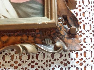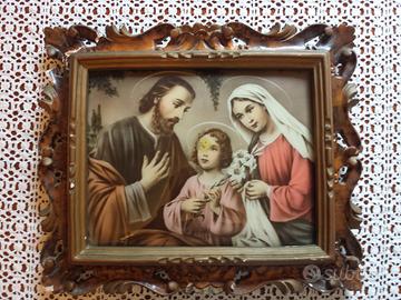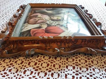 Vendo Quadro religioso per camera letto. E con cornice intarsiata in legno, immagine su base similvetro, e retroilluminazione. Presumibilmente di circa 70 o più anni