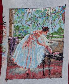 Quadro ricamato a mano con tecnica mezzo punto "Ballerina" da incorniciare.