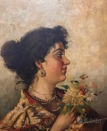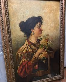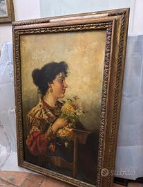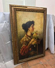 Quadro Ritratto Femminile Fine 800 Dimensioni 126x83 cm ( misura inclusa cornice) Stile Accadeismo italiano con influenze romantiche e veriste Condizioni come da foto per ulteriori info scrivetemi