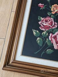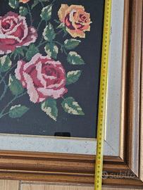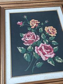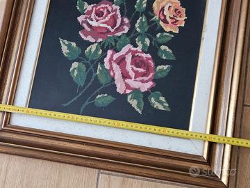 Vendo quadro con ricamo a mano raffigurante rose colorate nello stato d'uso in cui si trova. Misure indicate con foto