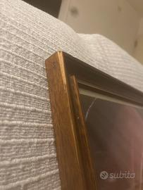 Cornice originale in legno, ben conservata, con un piccolo difetto visibile (vedi foto) che non compromette l’estetica generale.