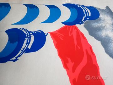 Gestione autonoma di vendita e spedizione: 3493422085. Spedizione pacco Poste Italiane 20 euro. Quadro serigrafia originale del pittore Spadari, copia numero 215 di 250. Firmata dall'autore. Anno 1971. Cornice circa 78 x 59 cm, serigrafia circa 49 x 42 cm. Artista Gian Giacomo Spadari (San Marino 1938, Parigi, 1997). Giangiacomo. Timbro de Il Segnapassi di Pesaro in basso a sinistra. Senza Titolo. Il Faro. Due ciminiere bianco blu con bandiera rossa e fumo grigio. Vintage. Arte contemporanea. Chiedere informazioni telefonando al numero sopra indicato, così da sveltire il processo di mediazione, grazie. Valuto scambio con monete antiche, carte Magic the Gathering (Mtg), vinili dischi da 33 giri (lp), Toncc