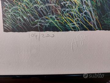 Serigrafia Franco Azzinari 60x80 "Campo di grano e papaveri" Esemplare 104 di 200