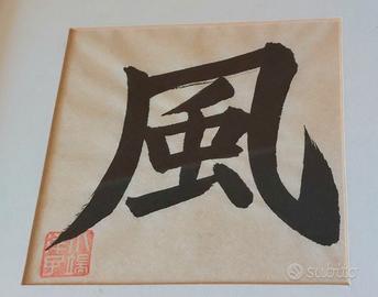 Quadro 2002 effettuato con la tecnica Kaisho: È la forma di scrittura regolare maggiormente usata, attualmente, nella vita quotidiana in Cina, in Corea e in Giappone. Da essa sono derivati i più diffusi caratteri grafici stampatello. con Certificato di Garanzia dell'artista Yoko Kawabata il Kanji raffiigurato significa Vento (Kaze) "Nata nel 1970 a Saitama, ho intrapreso il cammino dell'arte sin dai primi anni della mia vita: il mio viaggio artistico ha avuto inizio con mia nonna, Kaoru Kawabata, che mi ha guidato nell'arte della calligrafia fin dall'età di tre anni. Nel corso degli anni, ho partecipato con passione a numerose competizioni di shodo in Giappone, consolidando la mia maestria. Il mio impegno nell'arte è stato riconosciuto con la qualifica di insegnante di shodo presso la fondazione Nippon Shuji Education." misura 25,5 x 25,5 cm