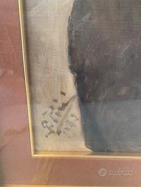 Dipinto ad olio su tavola raffigurante “signora con gatto” di G. Pini, datato 1942. Dotato di cornice coeva con passepartout in buone condizioni.