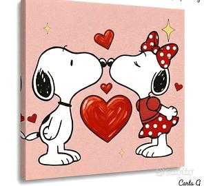 Non perderti un grande classico di Snoopy con la sua amata, dipinto su tela! Un'idea regalo originale e d'mpatto per la tua metà! acrilico su tela,40x40cm. Accetto offerte