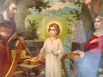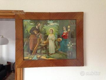 Quadro a stampa con una bella cornice in legno, raffigurante la Sacra famiglia. Classico quadro che stava nelle camere da letto dei nonni.