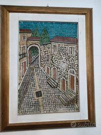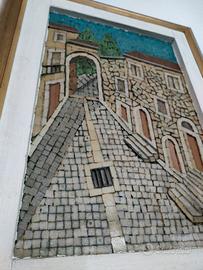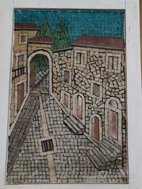 quadro strade del borgo antico mosaici in vetro, realizzato da artista Foggiano nel 1980