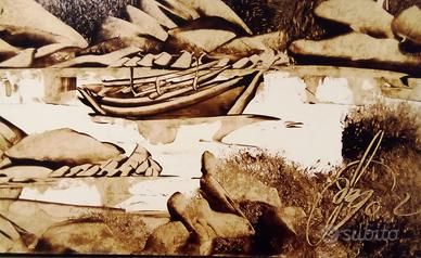 Quadro su cartoncino 33 x 24 cm di Salvatore Spano artista di strada a San Teodoro - Sardegna - Quadro fatto con spatola e pennello mozzo ( 1178 Q.3 )