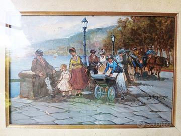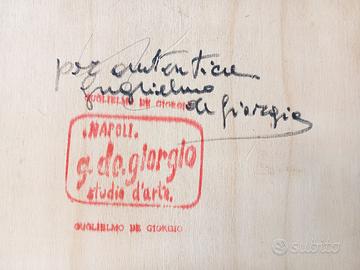 Quadro con cornice, firmato fronte e retro dal pittore napoletano Guglielmo De Giorgio. Il quadro è una bella veduta del lungomare di Napoli. Belli i colori, bella la cornice, quadro autentico per dare un tocco vintage dal sapore partenopeo alla vostra casa. Dimensioni con cornice 48x38, solo dipinto 30x20.