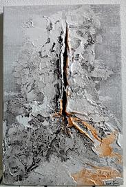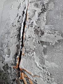 effetto 3D realizzato tramite pasta modellabile e successivamente dipinto con colori acrilici sui toni del bianco grigio nero e rame