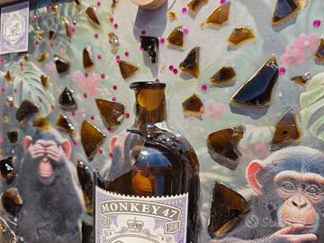Quadro moderno con bottiglia GIN MONKEY 47. Misura cornice 30 x 42. Specchio A3. Cornice color Rovere, con sfondo la figura che rappresenta tre scimmie: Mizaru (見猿), Kikazaru (聞か猿) e Iwazaru (言わ猿) che in Giappone significano “non vedere, non ascoltare, non dire” Attenzione: il quadro è artigianale e fatto interamente a mano. Possono essere piccoli difetti di produzione. I vetri sono levigati in modo grezzo e possono tagliare. TENERE FUORI DALLA PORTATA DEI BAMBINI.