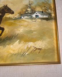 Quadro vintage firmato Drago - Cavaliere a cavallo