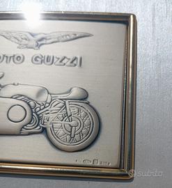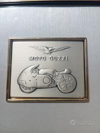 quandro commemorativo vintage moto Guzzi v8 500 cc in argento 925 laboratorio artigiano sampaolo. Perfetto mai appeso. 24 x 22 cm. cornice radica