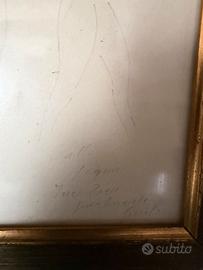 L'immagine mostra un disegno a matita o inchiostro su carta, incorniciato, raffigurante delle figure nude abbozzate.