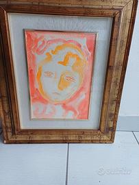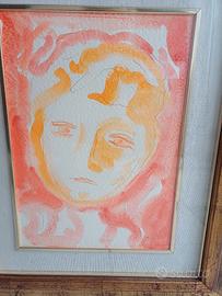 Acquerello su carta intelata. opera di Virgilio Guidi, titolo "testa" del 1982, misura 36x25. Opera certificata.