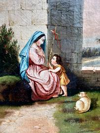 Antico quadro olio su tela raffigurante la Madonna con san Giovannino La tela misura senza la cornice 90,5 x 66,5 ome si vede nell ultima foto , è stato reintelato circa trent'anni fa da restauratrici professionali Solo ritiro a mano