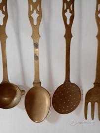 Quattro Utensili da Cucina Antichi con Appendino (tutto in Ottone)