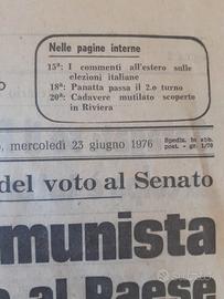 Quotidiano d'epoca IL GIORNALE del 25.06.1976 titolo di prima pagina " La DC ha evitato il sorpasso comunista"