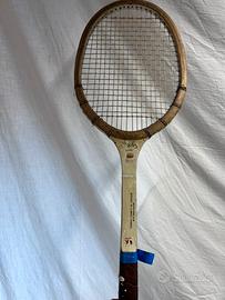 Racchetta Play King “Melbourne Autograph” vintage, anni ’50–’60, in legno, corde originali. Prodotta in Inghilterra, con fascino autentico d’epoca. Ottima per collezione o arredo.